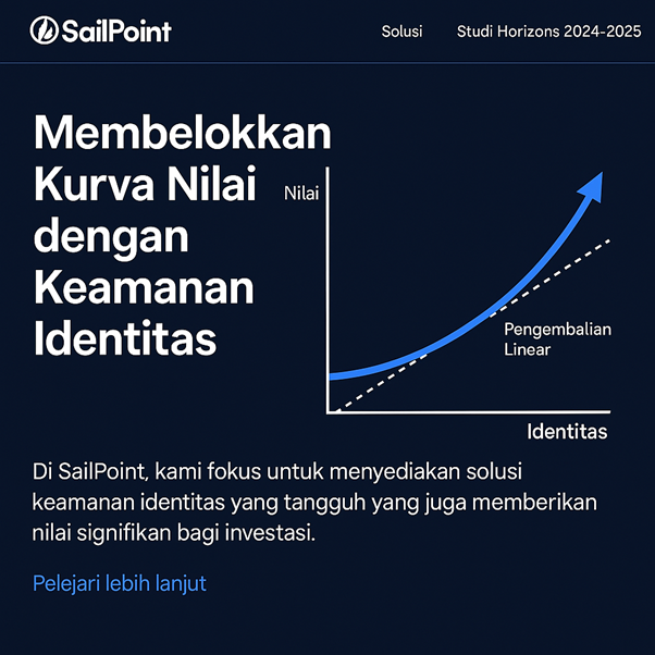 Di SailPoint, kami fokus untuk menyediakan solusi keamanan identitas yang tangguh yang juga memberikan nilai signifikan bagi investasi. Keamanan identitas modern yang terintegrasi bukan hanya tentang mengelola akses; ini tentang mempersiapkan organisasi untuk kesuksesan di masa depan dengan mengarahkan mereka menuju masa depan di mana mereka tidak hanya bertahan, tetapi benar-benar unggul.